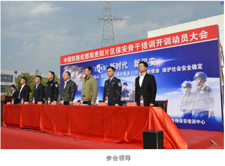 參會領導也分別對此次培訓提要求、作指示。貴州省鐵路護路辦周玉春主任:鐵路成都局集團公司非常重視鐵路安保工作,今年在營運成本居高不下的情況下還提高了保安員工資福利待遇,希望參訓保安員們要提高思想認識,加強學習,珍惜機會,不斷提升業(yè)務水平,維護好鐵路公共安全,在工作中履職盡責,擔當有為。貴州省公安廳治安總隊二處楊春暉處長:從近幾年我國公共安全事件案例,尤其是公眾場所治安、暴力恐怖襲擊等方面深入淺出地分析了當前公共安保工作的形勢。指出鐵路保安作為專業(yè)化的鐵路治安防范組織和公安機關的一支重要輔助力量,在保障鐵路安全、維護治安秩序、預防和制止違法犯罪活動、樹立中國鐵路形象等方面發(fā)揮了非常重要的作用。楊處要求參訓的保安隊員們在培訓過程中要尊重教員,遵守培訓中心的管理規(guī)定,克服各種困難,積極認真搞好培訓,學精應知應會知識,練就過硬專業(yè)技能,在今后的工作中能學以致用。貴陽鐵路公安處保安支隊胡宏明副支隊長:首先肯定了貴州陟翔保安培訓中心的辦學能力,對參訓的保安員精神振作、姿態(tài)端正、作風嚴謹、紀律嚴明提出表揚,要求各位參訓人員要認清當前鐵路安保工作形勢,端正學習態(tài)度,珍惜此次培訓機會,自覺遵章守紀,克服各種困難,扎實練好本領,力爭取得好的培訓效果。