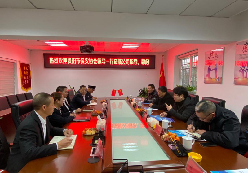 2020年1月17日上午九點(diǎn)十分,貴陽(yáng)市新成立的保安協(xié)會(huì)會(huì)長(zhǎng)劉毅一行到貴州陟翔保安有限公司進(jìn)行指導(dǎo)、慰問(wèn),總公司總經(jīng)理馮波、常務(wù)副總張小慶、黨支部書(shū)記李明澤、保安公司一區(qū)域經(jīng)理劉帆及相關(guān)部門同志陪同。
