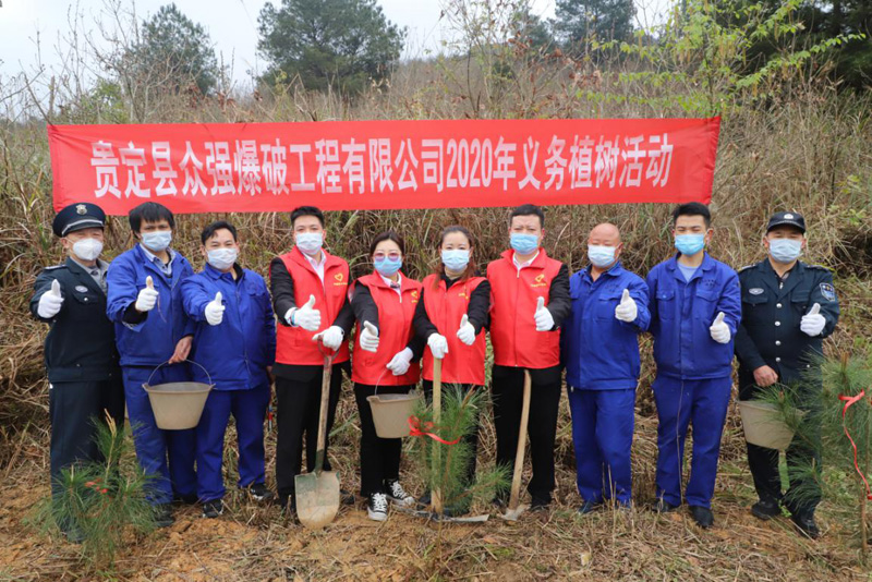 上午十點(diǎn),在貴定縣眾強(qiáng)爆破工程有限公司庫房、銅仁鑫安爆破工程有限公司庫房分別展開了植樹活動(dòng),總公司股東代表羅仕銀、總公司總經(jīng)理馮波、總公司常務(wù)副總張小慶、總公司副總經(jīng)理余艷、總公司黨支部書記李明澤、分公司領(lǐng)導(dǎo)班子以及黨員干部參加義務(wù)植樹活動(dòng)。植樹現(xiàn)場,大家揮動(dòng)鋤頭、鐵鏟,提桶運(yùn)水,一起植樹造林。大家滿懷熱情,卯足干勁,有的挖坑、運(yùn)樹,有的扶苗、栽植,有的培土、澆水,銜接有序、配合默契,共栽植松樹、香樟樹等樹木30余棵,為初春的大地種下了一片新綠。
