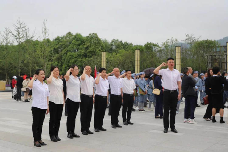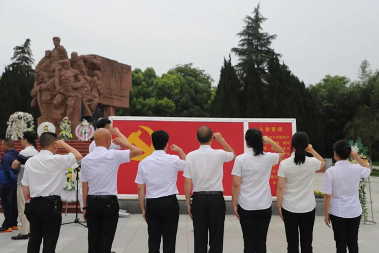 參觀結(jié)束后,全體黨員在紀(jì)念碑處重溫入黨誓詞,用心感受革命先烈們在這里用熱血做出的斗爭和用生命抒寫的初心和使命。